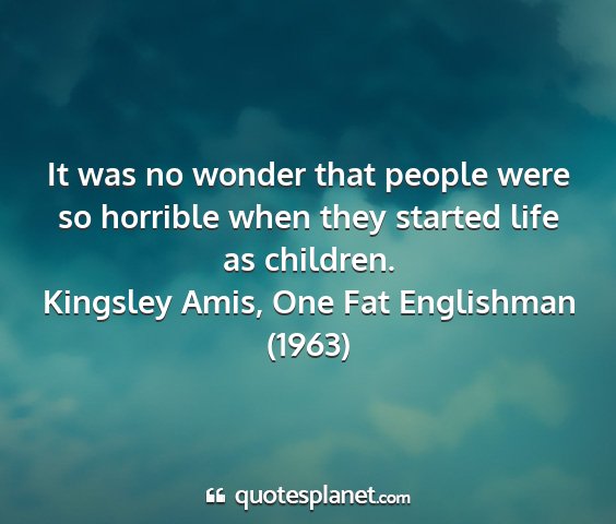 It was no wonder that people were so horrible when they started life as children.Kingsley Amis, One Fat Englishman (1963)