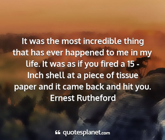 It was the most incredible thing that has ever happened to me in my life. It was as if you fired a 15 - Inch shell at a piece of tissue paper and it came back and hit you.Ernest Rutheford