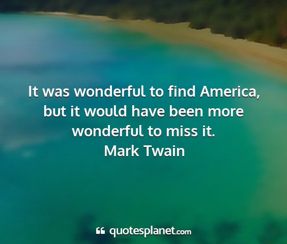 It was wonderful to find America, but it would have been more wonderful to miss it.