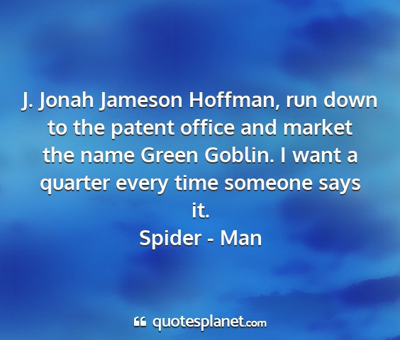 J. Jonah Jameson Hoffman, run down to the patent office and market the name Green Goblin. I want a quarter every time someone says it.Spider - Man