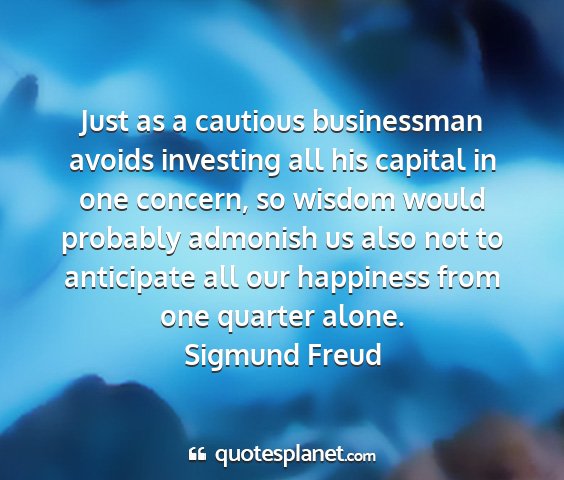 Just as a cautious businessman avoids investing all his capital in one concern, so wisdom would probably admonish us also not to anticipate all our happiness from one quarter alone.Sigmund Freud