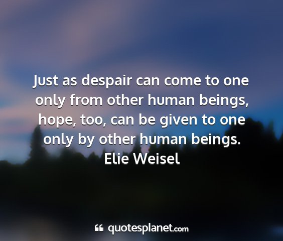 Just as despair can come to one only from other human beings, hope, too, can be given to one only by other human beings.Elie Weisel