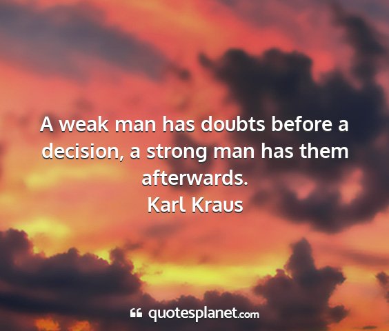 A weak man has doubts before a decision, a strong man has them afterwards.