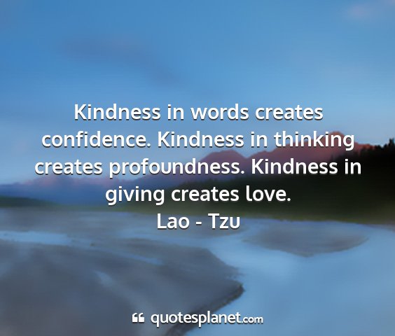 Kindness in words creates confidence. Kindness in thinking creates profoundness. Kindness in giving creates love.Lao - Tzu