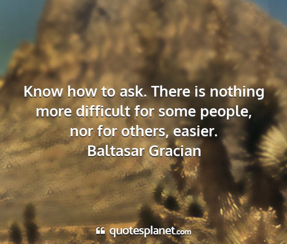Know how to ask. There is nothing more difficult for some people, nor for others, easier.Baltasar Gracian