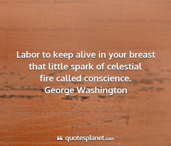 Labor to keep alive in your breast that little spark of celestial fire called conscience.George Washington