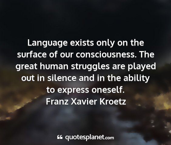 Language exists only on the surface of our consciousness. The great human struggles are played out in silence and in the ability to express oneself.Franz Xavier Kroetz