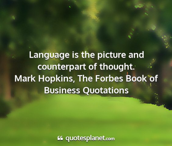 Language is the picture and counterpart of thought.Mark Hopkins, The Forbes Book of Business Quotations