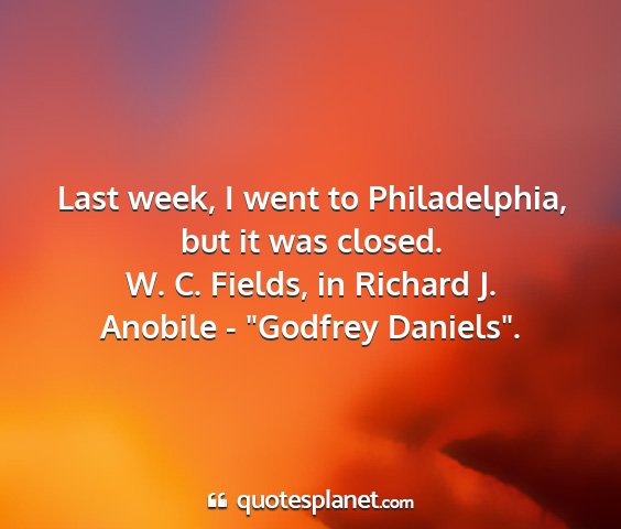 Last week, I went to Philadelphia, but it was closed.W. C. Fields, in Richard J. Anobile - "Godfrey Daniels".