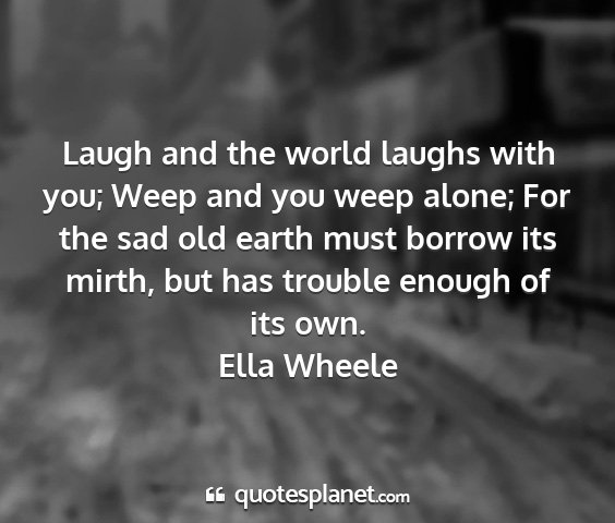 Laugh and the world laughs with you; Weep and you weep alone; For the sad old earth must borrow its mirth, but has trouble enough of its own.Ella Wheele