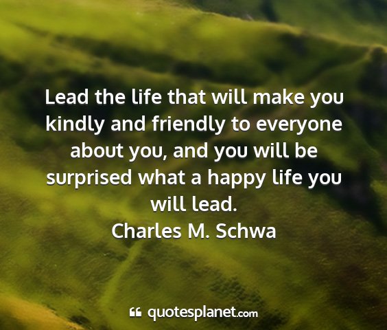 Lead the life that will make you kindly and friendly to everyone about you, and you will be surprised what a happy life you will lead.Charles M. Schwa