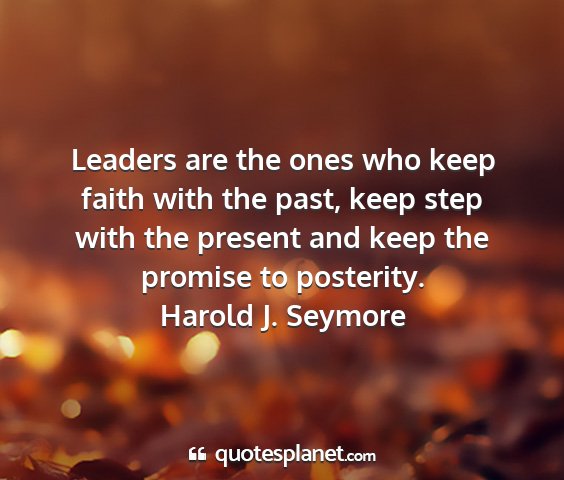 Leaders are the ones who keep faith with the past, keep step with the present and keep the promise to posterity.Harold J. Seymore