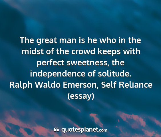 The great man is he who in the midst of the crowd keeps with perfect sweetness, the independence of solitude.Ralph Waldo Emerson, Self Reliance (essay)