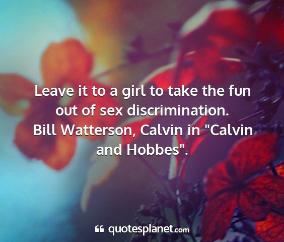 Leave it to a girl to take the fun out of sex discrimination.Bill Watterson, Calvin in "Calvin and Hobbes".