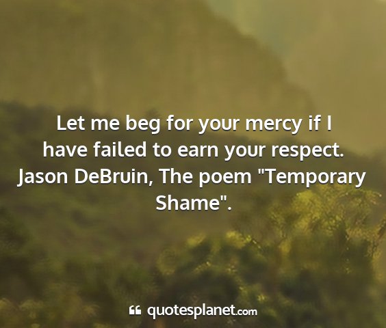 Let me beg for your mercy if I have failed to earn your respect.Jason DeBruin, The poem "Temporary Shame".