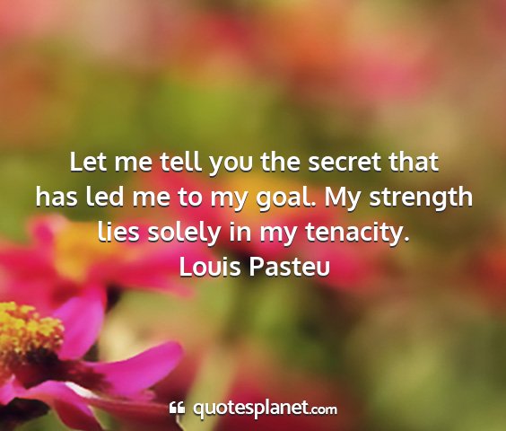 Let me tell you the secret that has led me to my goal. My strength lies solely in my tenacity.Louis Pasteu
