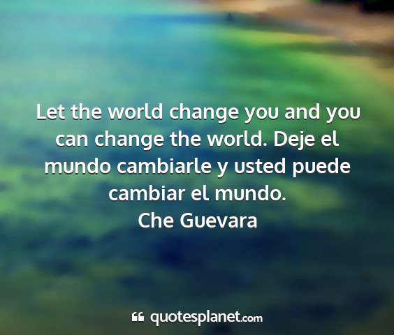 Let the world change you and you can change the world. Deje el mundo cambiarle y usted puede cambiar el mundo.Che Guevara