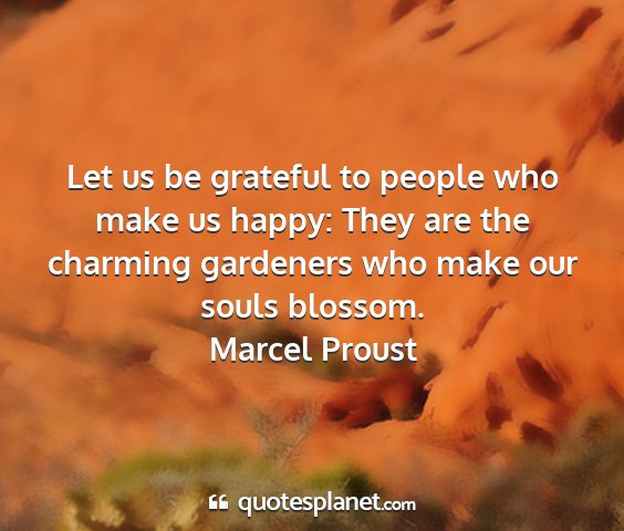 Let us be grateful to people who make us happy: They are the charming gardeners who make our souls blossom.Marcel Proust