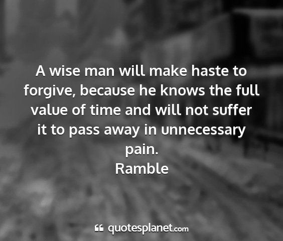 A wise man will make haste to forgive, because he knows the full value of time and will not suffer it to pass away in unnecessary pain.Ramble