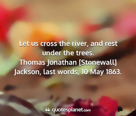 Let us cross the river, and rest under the trees.Thomas Jonathan [Stonewall] Jackson, last words, 10 May 1863.