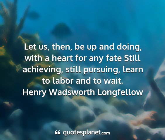 Let us, then, be up and doing, with a heart for any fate Still achieving, still pursuing, learn to labor and to wait.Henry Wadsworth Longfellow
