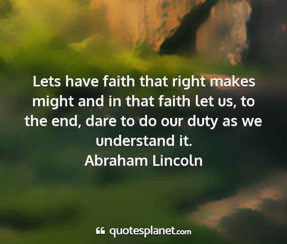 Lets have faith that right makes might and in that faith let us, to the end, dare to do our duty as we understand it.Abraham Lincoln