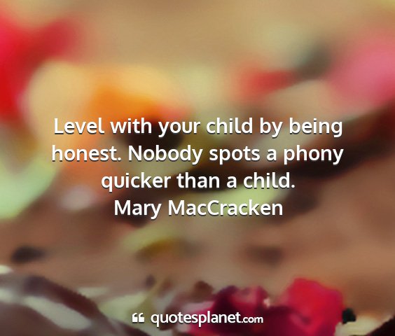 Level with your child by being honest. Nobody spots a phony quicker than a child.