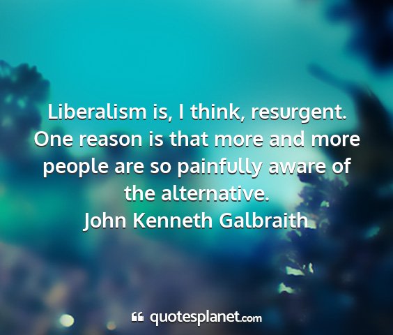 Liberalism is, I think, resurgent. One reason is that more and more people are so painfully aware of the alternative.John Kenneth Galbraith