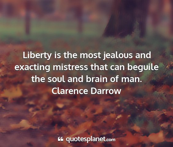 Liberty is the most jealous and exacting mistress that can beguile the soul and brain of man.Clarence Darrow