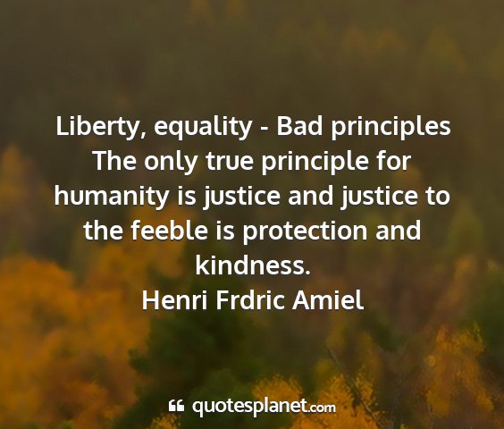Liberty, equality - Bad principles The only true principle for humanity is justice and justice to the feeble is protection and kindness.Henri Frdric Amiel
