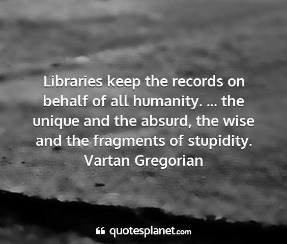 Libraries keep the records on behalf of all humanity. ... the unique and the absurd, the wise and the fragments of stupidity.Vartan Gregorian
