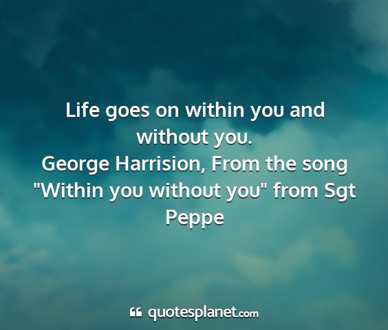 Life goes on within you and without you.George Harrision, From the song "Within you without you" from Sgt Peppe