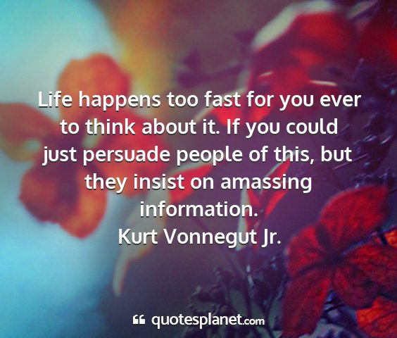 Life happens too fast for you ever to think about it. If you could just persuade people of this, but they insist on amassing information.Kurt Vonnegut Jr.