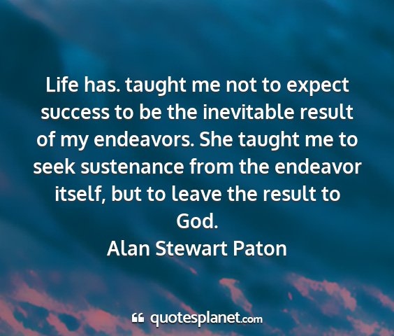 Life has. taught me not to expect success to be the inevitable result of my endeavors. She taught me to seek sustenance from the endeavor itself, but to leave the result to God.Alan Stewart Paton