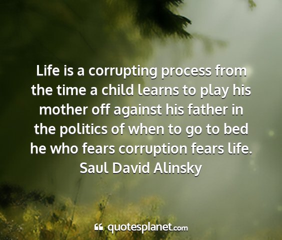 Life is a corrupting process from the time a child learns to play his mother off against his father in the politics of when to go to bed he who fears corruption fears life.Saul David Alinsky