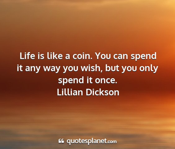 Life is like a coin. You can spend it any way you wish, but you only spend it once.