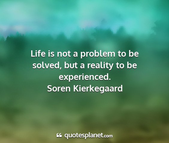 Life is not a problem to be solved, but a reality to be experienced.