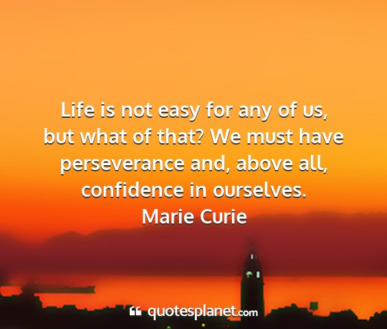Life is not easy for any of us, but what of that? We must have perseverance and, above all, confidence in ourselves.Marie Curie