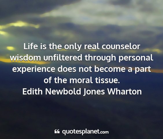 Life is the only real counselor wisdom unfiltered through personal experience does not become a part of the moral tissue.Edith Newbold Jones Wharton
