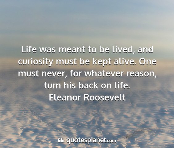 Life was meant to be lived, and curiosity must be kept alive. One must never, for whatever reason, turn his back on life.Eleanor Roosevelt