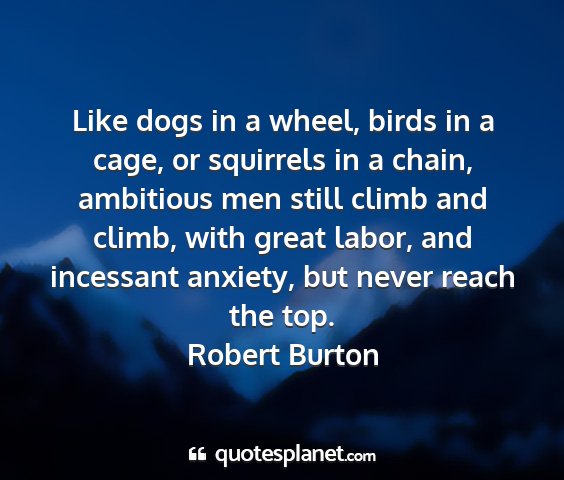 Like dogs in a wheel, birds in a cage, or squirrels in a chain, ambitious men still climb and climb, with great labor, and incessant anxiety, but never reach the top.Robert Burton