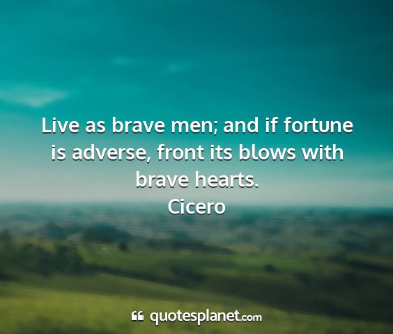 Live as brave men; and if fortune is adverse, front its blows with brave hearts.