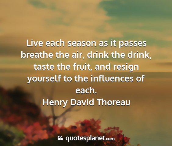 Live each season as it passes breathe the air, drink the drink, taste the fruit, and resign yourself to the influences of each.Henry David Thoreau