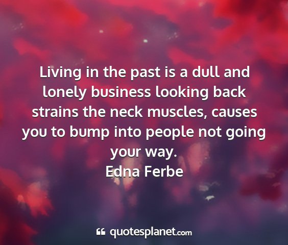 Living in the past is a dull and lonely business looking back strains the neck muscles, causes you to bump into people not going your way.Edna Ferbe