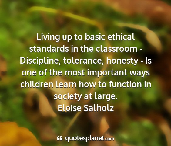 Living up to basic ethical standards in the classroom - Discipline, tolerance, honesty - Is one of the most important ways children learn how to function in society at large.Eloise Salholz