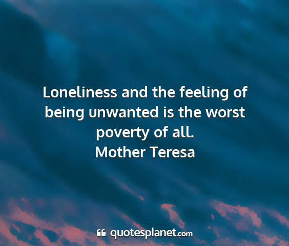Loneliness and the feeling of being unwanted is the worst poverty of all.