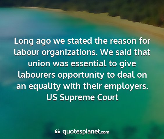 Long ago we stated the reason for labour organizations. We said that union was essential to give labourers opportunity to deal on an equality with their employers.US Supreme Court