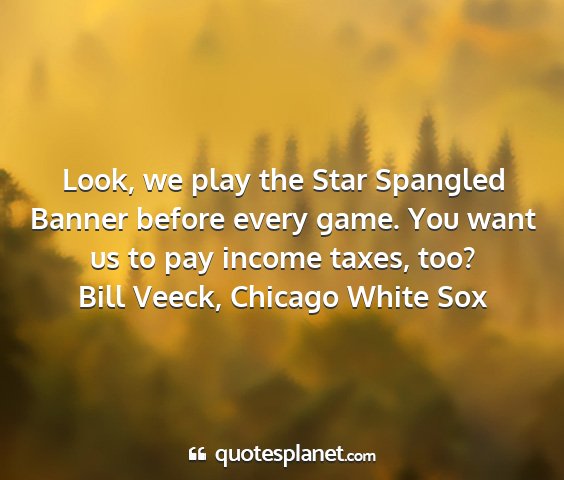 Look, we play the Star Spangled Banner before every game. You want us to pay income taxes, too?Bill Veeck, Chicago White Sox