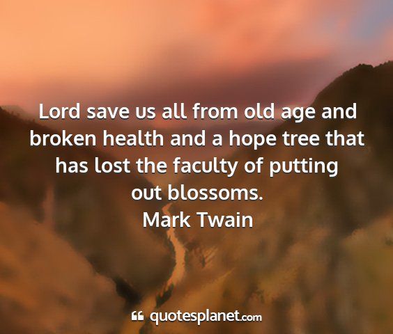 Lord save us all from old age and broken health and a hope tree that has lost the faculty of putting out blossoms.Mark Twain