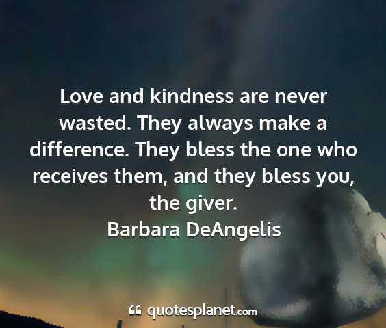 Love and kindness are never wasted. They always make a difference. They bless the one who receives them, and they bless you, the giver.Barbara DeAngelis